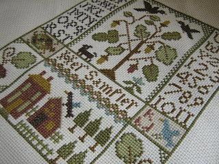 Whee! A finished cross stitch always supplies a great sense of accomplishment. I think it's the perfect craft when you can only sneak in a few stitches here and there. (Or sit for hours hunched up in the corner of the living room in the wee hours squinting through reading glasses- you know, either way.)